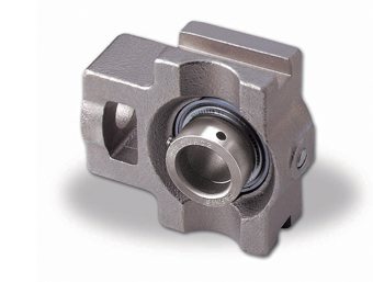 Take-up units are used where shaft adjustment and belt tightening devices are required, such as conveyor applications. With a choice of locking systems, this cast-iron style is used for standard duty and pressed-steel design for low-cost, light-duty applications.
