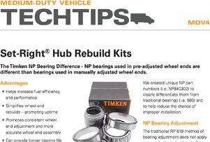 Overview of Timken NP bearings for pre-adjusted wheel ends. -