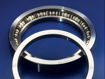 Precision crossed roller bearings (TXR) are designed to offer the highest levels of rotational accuracy and rigidity while conserving space and saving material costs. The bearing features two sets of races and rollers brought together at right angles with alternate rollers facing in opposite directions. This allows two half-rows of rollers to fit into the space of one. The steep-angle, tapered geometry results in a total effective bearing spread much greater than the width of the bearing itself.