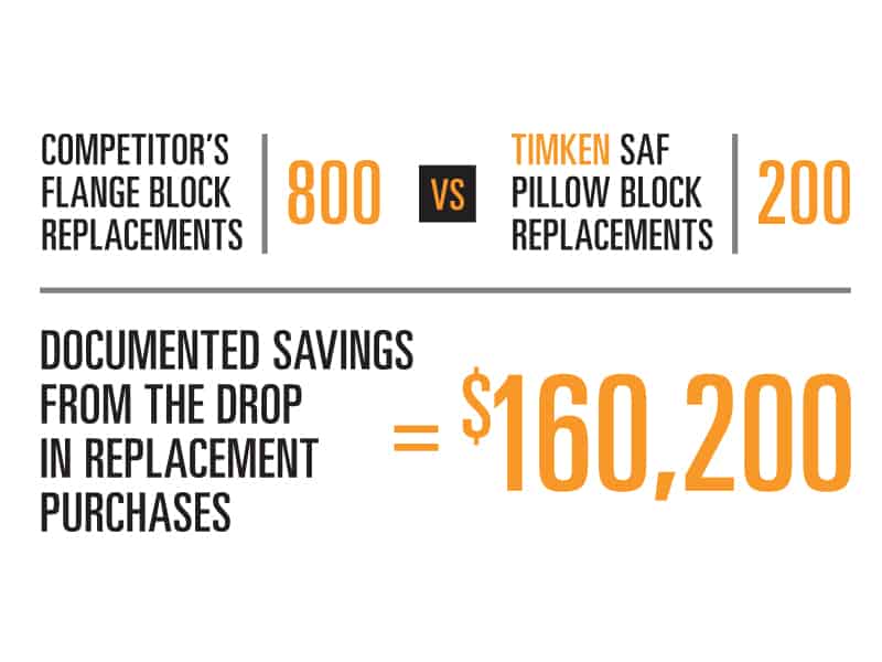 The Timken engineering team analyzed the specific operating conditions of the application and identified the need for more robust protection. The team proposed steel SAF split pillow blocks, along with supplementary high-temperature lubricant and end covers to extend each bearing’s life to a full year.