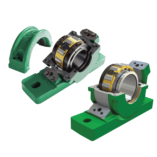 Bucket elevators, a vital part of the production process in cement plants, carry heavy loads under arduous conditions. One customer experienced challenges in replacing components that keep these heavy-duty workhorses running. In its operations, buckets attached by two chains carry crushed limestone 40 yards to the top of a pre-heater tower, with the shaft itself supporting up to 16 tons of weight. When the drive-side head pulley bearing failed, it would take three working days to remove and replace it, since it was trapped between the bucket elevator drive pulley and the gearbox/motor assembly. The maintenance costs: Three days of lost production time and the expense of renting a 35-ton crane.
