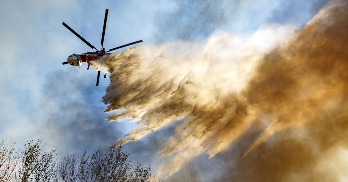 Often firefighting rotorcraft are decommissioned defense choppers retrofitted for aerial firefighting. Some are the world’s largest, able to suck up 3,000 gallons of water from a source in 90 seconds. Computers and night vision help pilots accurately drop water or flame retardant.